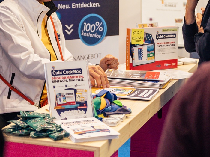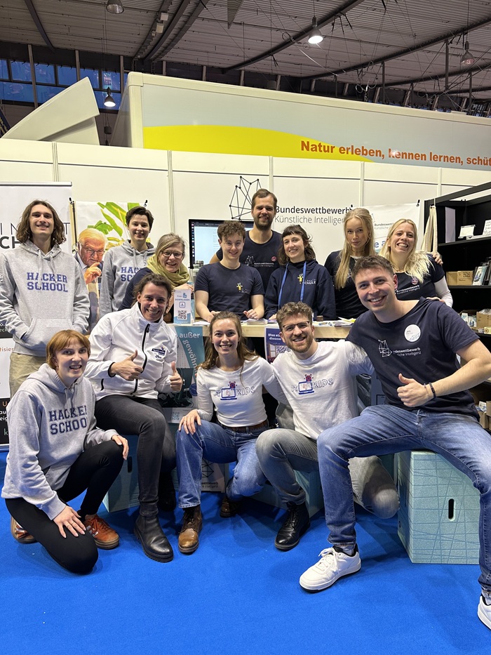 In diesem Jahr haben wir auf der didacta, Europas größter Bildungsmesse, erstmals die KI- & Digitalwerkstatt ausgetragen. Gemeinsam mit unseren Partnern Hacker School ↗, KI macht Schule ↗, Bundeswettbewerb Künstliche Intelligenz ↗ und TechUcation@school haben wir unsere Standfläche von 125m² mit persönlicher Beratung, kostenfreien Unterrichtsmaterialien, Workshopangeboten, einer Podcast-Corner und Waffeln zu einem einzigartigen Erlebnis für die Besucher gemacht. Alle Organisationen haben von dem Zusammenschluss zur gemeinsamen KI- & Digitalwerkstatt deutlich profitiert. Wir freuen uns sehr, dieses Konzept auch auf der didacta 2026 in Köln wieder umzusetzen.