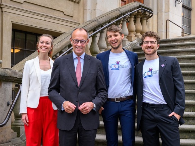 Die Feierlichkeiten in der Französischen Friedrichstadtkirche in Berlin waren für uns DAS Highlight des Jahres. Wir durften die inspirierenden Gründer von Biontech Özlem Türeci und Uğur Şahin kennenlernen, die mit dem Deutschen Nationalpreis ausgezeichnet wurden. Wir haben dem Bundeskanzler Herrn Friedrich Merz die Hand geschüttelt. Außerdem haben wir eine große Bühne bekommen, um für unsere Vision zu begeistern. Es war uns eine Ehre!