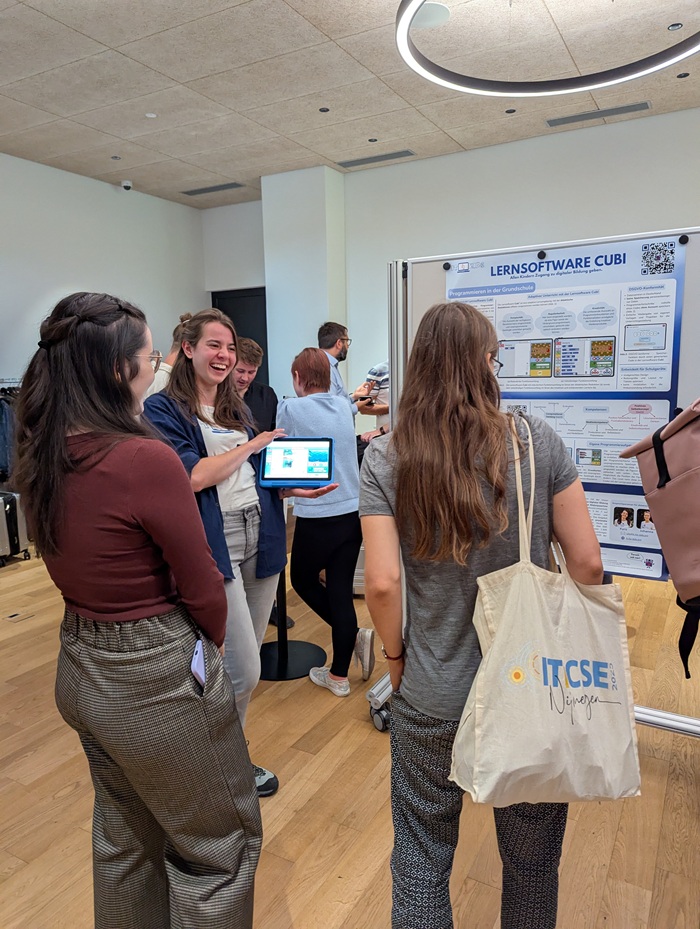 Diesen Community-Gedanken durften wir ebenfalls auf der GI-Fachtagung “Informatik und Schule”↗ in Stoos (Schweiz) erleben. Zum ersten Mal waren wir bei der bundesweiten Veranstaltung dabei und wurden herzlich aufgenommen. Wir stellten den Professor*innen und Doktorand*innen der Didaktik der Informatik sowie den GI-Mitgliedern und Informatiklehrkräften unsere Lernsoftware Cubi vor und konnten wertvolle Impulse aus aktuellen, wissenschaftlichen Forschungen für unsere Arbeit mitnehmen.