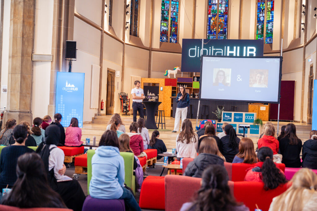 Ein Blogbeitrag von Joline Baumbach • Am 23. April öffnen wir gemeinsam mit dem digitalHUB Aachen die Türen für Mädchen der Klassen 5 bis 13. Ein ganzer Tag Technik, echte Profis und jede Menge Mut – kostenlos und mitten in Aachen.