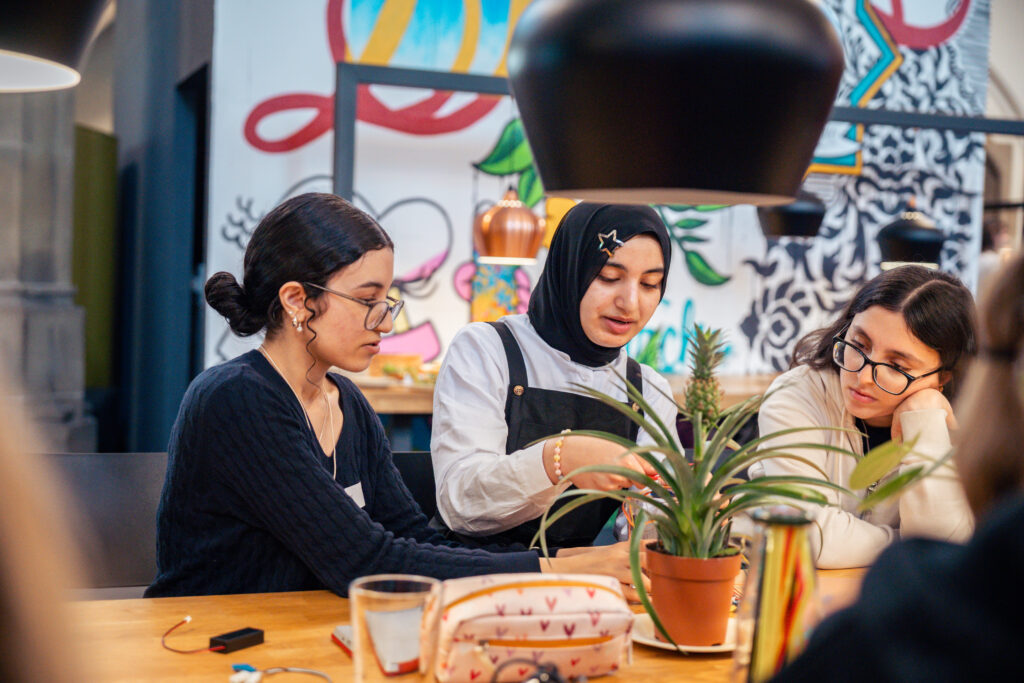 Danach geht’s in die Workshops. Jede Teilnehmerin arbeitet mit Profis aus Aachener Unternehmen an echten Projekten, die am Ende des Tages vorzeigbar sind.