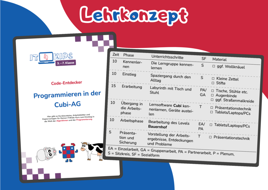 Abwechslungsreiche Methoden, spannende Programmieraufgaben und viel Raum fürs Experimentieren und Selber Ausprobieren werden für eine unvergessliche Zeit sorgen. Die AG-Konzepte umfassen detaillierte Kursbausteine, Arbeitsblätter und Kopiervorlagen für garantierten Programmierspaß. Die Schülerinnen und Schüler tauchen ein in die Welt der Algorithmen und Programmierung.