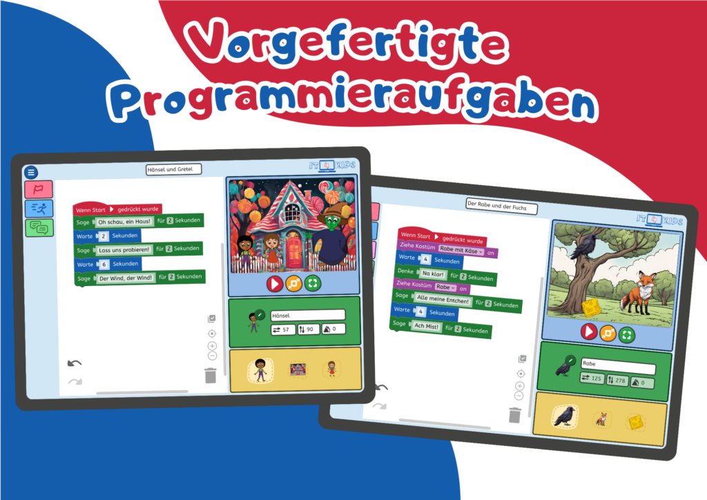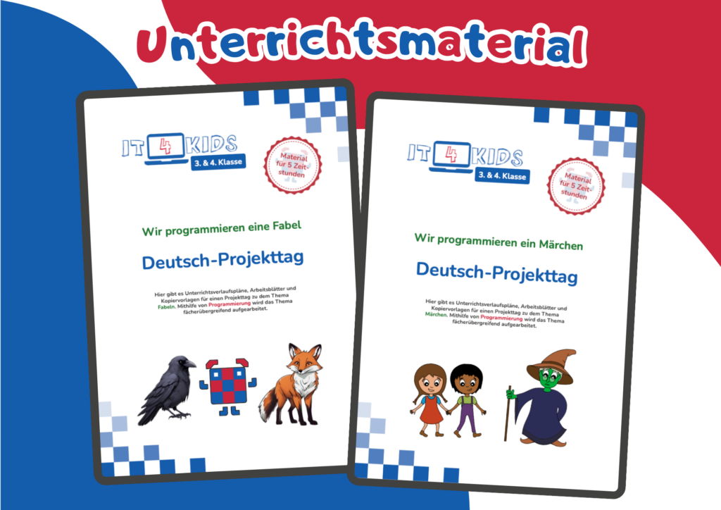 Das Unterrichtsmaterial für den Projekttag “Wir programmieren eine Fabel!” umfasst detaillierte Stundenplanungen, Arbeitsblätter und Kopiervorlagen für bis zu 5 Zeitstunden voller Programmierspaß. Die Schüler*innen befassen sich mit dem Thema Fabeln anhand der Beispielfabel Der Rabe und der Fuchs. Ziel des Projekttages ist ein Medienprodukt, das die Schüler*innen mittels Programmierung erstellen.