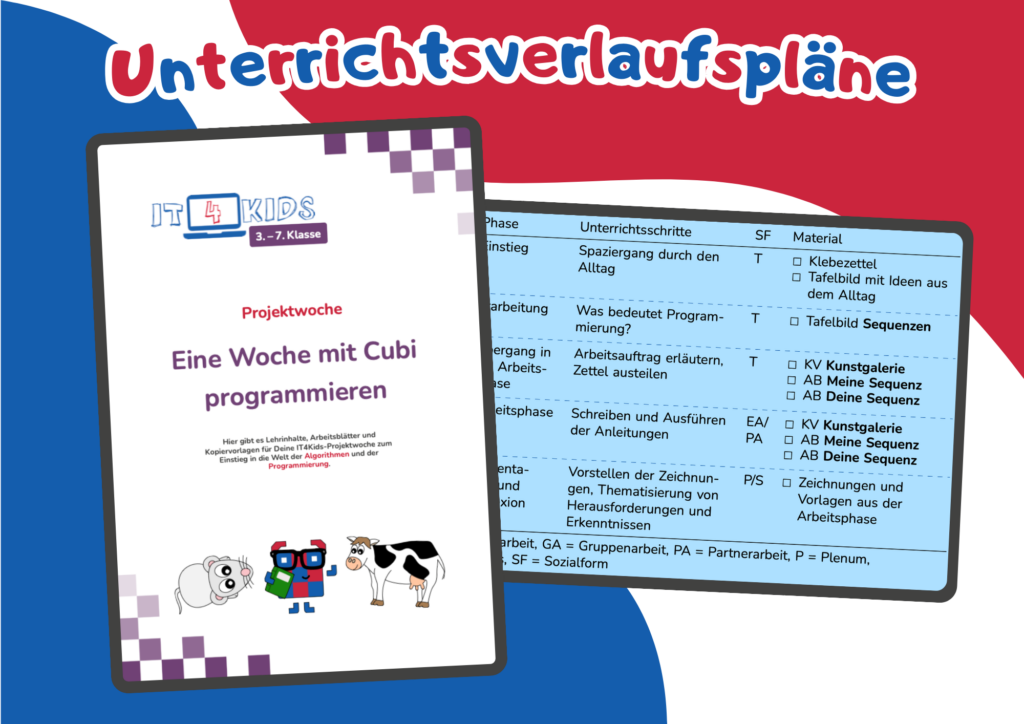 Das Unterrichtsmaterial für die Projektwoche “Programmieren in der Grundschule” umfasst detaillierte Stundenplanungen, Arbeitsblätter und Kopiervorlagen für bis zu 5 Tage voller Programmierspaß. Die Schülerinnen und Schüler tauchen ein in die Welt der Algorithmen und Programmierung.