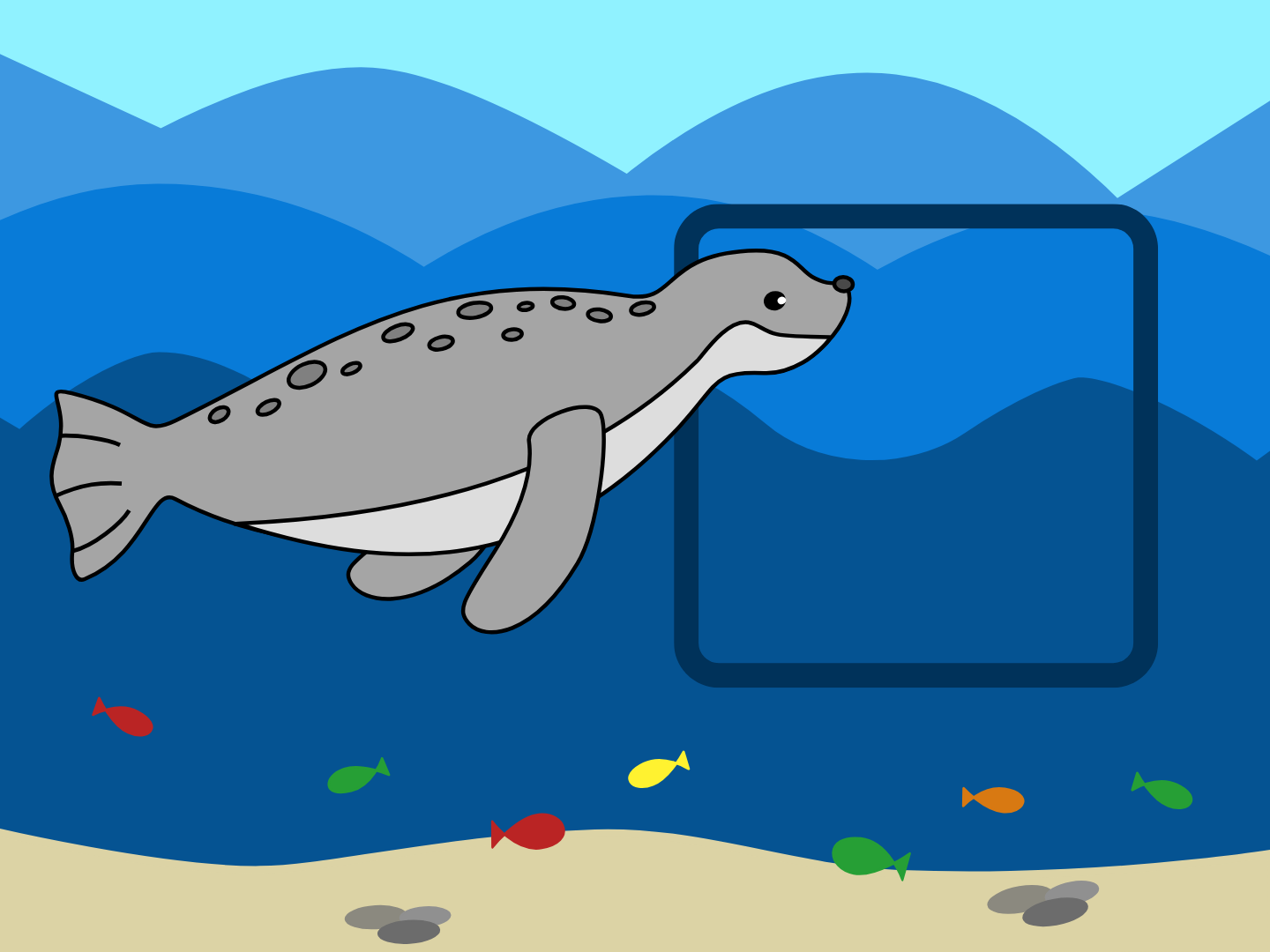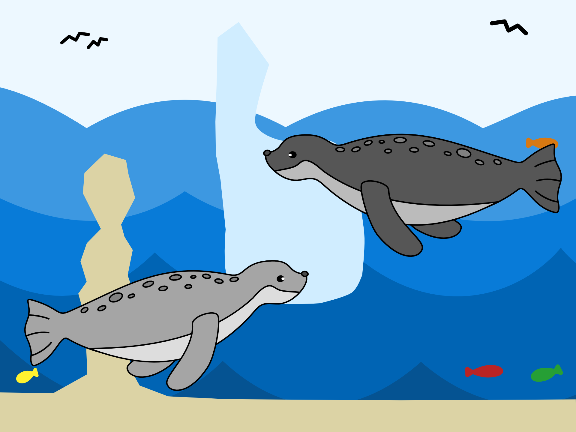 Lass die Robben Tarina und Natari durchs Wasser gleiten.