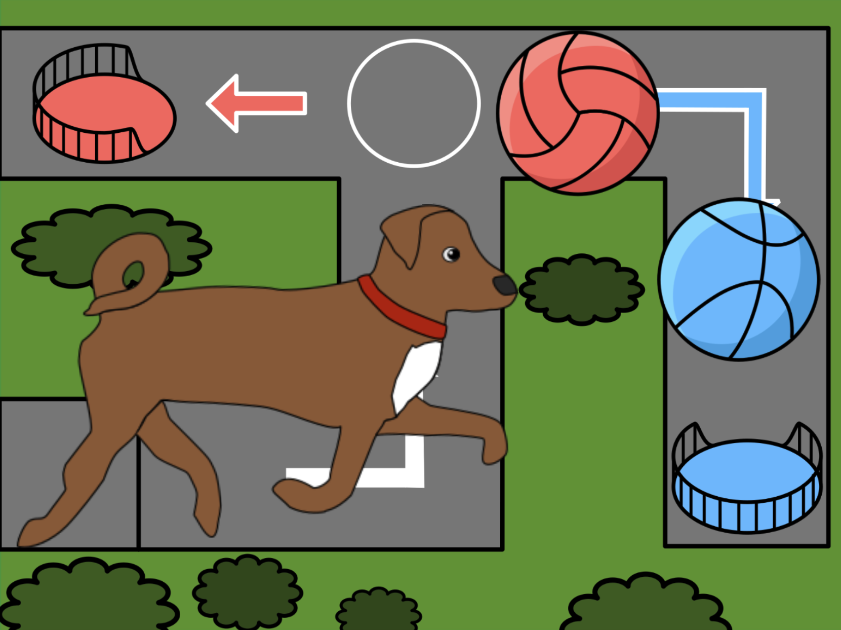 Pilu hat sich verlaufen und findet nicht den Weg zum Korb. Kannst du ihm helfen die richtigen Entscheidungen zu treffen?